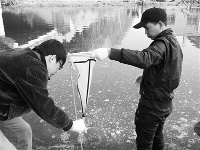 | 图为江苏省环科院课题组工作人员进行浮游动物定量采集。 |