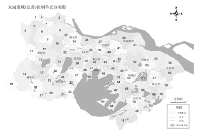 图为太湖流域(江苏)控制单元分布图。