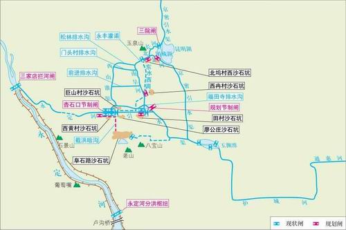 城市河道水质改善示范工程拟选址在三家店拦河闸下游的永定河引水渠,河道附近有足够的场地用于修筑示范工程附属设施,在南水北调引水进京之前,永定河引水渠将成为北京市城区河湖环境用水的主要来源,因此选择其作为城市河道水质改善试验点具有极大的代表性和示范意义。