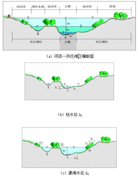 在河流-洪泛滩区系统中,洪水上涨期间,河流是水体、溶解物和悬移物的传递工具,初级生产过程和次级生产过程都发生在滩区。水位回落期间,河流成为了水生生物的避难所和种子的散播通道。