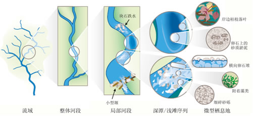 图1 河流生物栖息地尺度示意图(14)