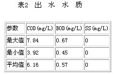 中水回用系统于2001年10月正式运转,在3个月的时间内MBR出水水质见表2(检验方法按照《生活杂用水标准检验法》(CJ25.2-89)进行检测)。