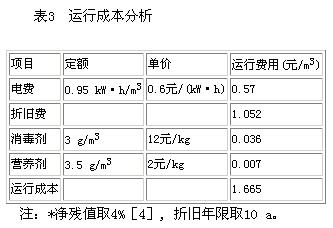 5 中水回用处理工艺运行成本分析