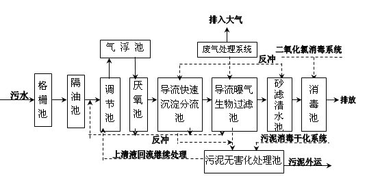 由于导流曝气生物滤池的生物和物理综合截留作用,处理后水中的SS很少,故不需设置二沉池和污泥回流泵房,使处理流程得以简化,进一步节省占地面积。