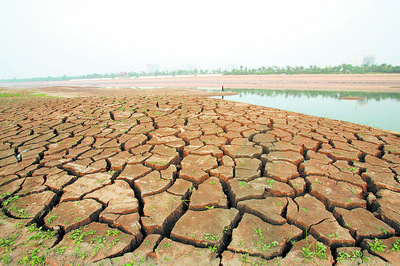 龟裂的湘江河道。
