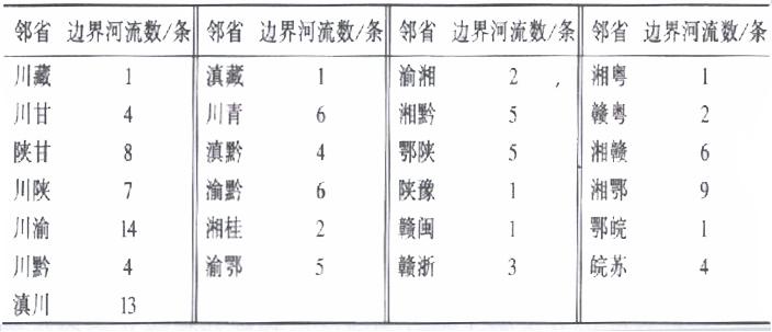 表1 长江流域省际边界河流分布情况统计