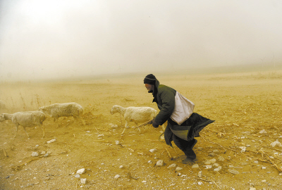 上图 2010年春天,河北省张家口怀来县小南辛堡.官厅水库库区,一位放羊的老人赶着羊群在水库一侧永定河多年前的河滩上干裂的河道里漫步。官厅水库库区是海河水系永定河上第一座大型水库,距离北京105公里,曾经是北京主要供水水源地之一。20世纪80年代后期,库区水受到严重污染,90年代水质继续恶化,1997年水库被迫退出城市生活饮用水体系。 国新