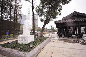 除了更加亲水、便民,人文气息也成了新玄武湖的特色,因为历史上李白、张居正、郭璞等大家都曾在玄武湖留下自己的足迹。在环湖路(玄武门—和平门段)上,两个依据历史名人故事而建的景点格外引人注目。其中,一个景点建筑旁立着王安石的花岗岩雕像;一个景点建筑旁立着李白的汉白玉塑像。