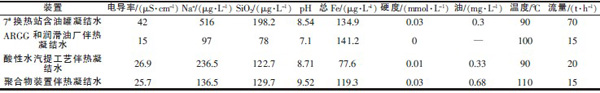 表1 大庆炼化公司各工艺装置凝结水水质