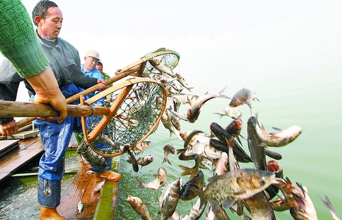 2月23日,巢湖渔业部门成规模投放能改善蓝藻危害的鱼苗。巢湖市针对巢湖水质下降及蓝藻水华频发问题,多措并举开展综合治理。该市以湖泊生态修复与水质生物调控为主要技术手段,采取“控源、治污、清淤、修复、活水、限养”综合治理,用科学的生态方法逐步恢复生态系统结构与功能,以有效控制蓝藻水华,使巢湖水质得到根本改善。(记者徐国康摄影报道)