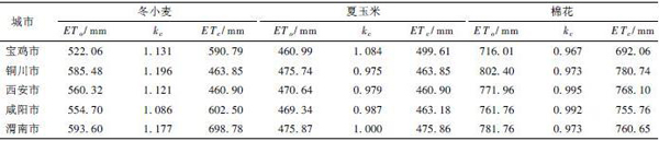 表3 关中地区作物需水量计算结果
