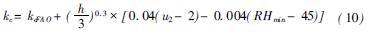 FAO-56 对很多作物的kc 给出了推荐值, 针对某个具体研究区域时, 可按式(10) 根据气象要素进行调整。在对关中地区kc调整后, 与他人实验研究得出的系数值比对再行调整, 最终得到研究区内小麦、玉米和棉花的kc值。因为计算的每个县都有各自的作物系数值, 表中所列数值是取的各市下属县kc的算术平均值。