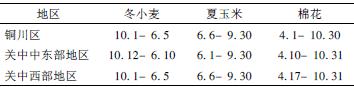 表2 关中地区主要作物生育期划分( 月. 日)