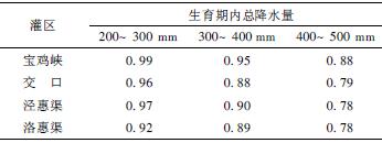 表4 陕西省夏玉米生育期内降水有效利用系数参考值