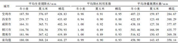 Table 6 Netirrigation requirement of main crops in guanzhong