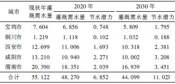 表8 关中地区农业节水潜力