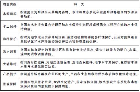 表1 各二级水生态服务功能释义