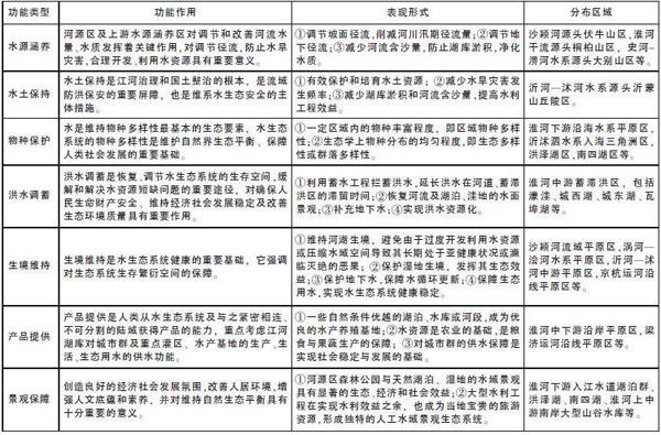2.淮河流域水生态服务功能类型划分体系