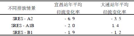 表4 宜昌、大通站2010~2049年不同排放情景年平均径流变化率%