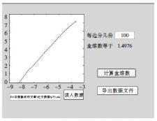 这样的动态处理过程是人工无法实现的。这里通过Matlab编程自行搭建计算平台实现这一计算过程。在该应用程序中,只要将研究对象的坐标文件导入程序并设置需要将研究区域划分的最多方格数,程序便可通过循环功能自动对区域进行动态分割。假如在窗口设置参数为20,研究区域即可被依次分割成2×2个方格,3×3个方格,4×4个方格,……,20×20个方格,继而程序会将测得的数据绘制于界面的图线框中,并显示出最终计算结果。同时程序还设置有结果数据输出功能,为结果分析提供方便。