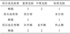 表2 泥石流各种特征赋值
