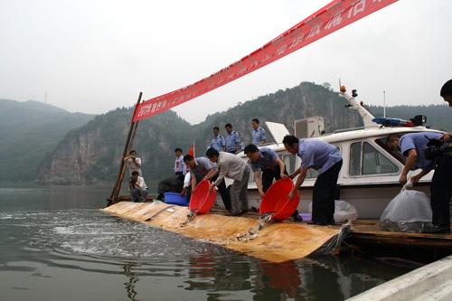 8点30分,渔民代表将鱼苗抬至现场。随后,县公证处对放流品种、鱼苗质量和数量进行了现场公证。工作人员将鱼苗注入水桶、胶盆中,现场人员开始了放流行动。此时,现场是一片欢呼声,那种热烈气氛不亚于过年过节。一桶桶鱼苗注入沅江水中,鱼儿自由自在的游来游去,引来附近无数市民驻足观看。