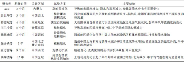 表1 植被变化对我国区域气候影响的相关研究进展[3-10]
