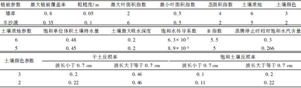 表2 BATS 中矮草和半沙漠对应的植被参数和土壤参数[13]