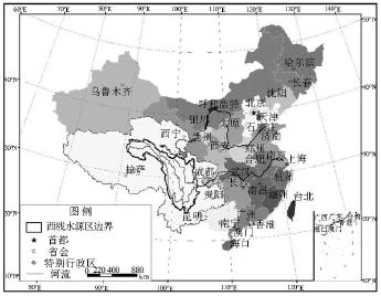 本文研究区域范围为90°E- 105°E, 24°N- 36°N, 包含整个南水北调西线工程水源区。南水北调西线水源区包括通天河、雅砻江、大渡河, 金沙江等主要河流水系, 即宜宾以上的长江流域。西线工程水源区水能资源的蕴藏量十分丰富, 是我国西南水电开发的重要基地, 同时也是我国生物多样性保护的重点地区。该区横跨四川、青海、云南和西藏4 省, 位于青藏高原的东麓, 平均海拔在3000m 以上, 属高山区域极高山区, 见图1。