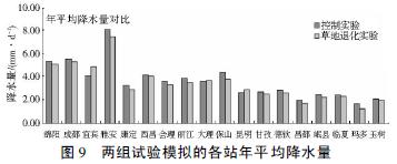 Fig. 9 Annual precipitation volume of monitoring sites of two modeling experiments (unit: mm/ d)