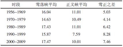 表1 莺落峡、正义峡站各时段实测径流量对照亿m3