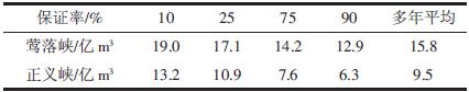 表2 莺落峡、正义峡不同保证率水量分配