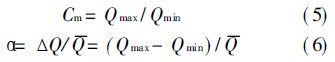 由于各级流域面积大小不一,绝对变化幅度可比性不强,故本文选用径流相对变幅(Cm) 、绝对变化量与平均径流量的比值α来衡量径流变化情况。相对变幅指研究范围内最大径流与最小径流的比值,绝对变幅指最大径流(Qmax) 与最小径流量(Qmin) 之差,即: