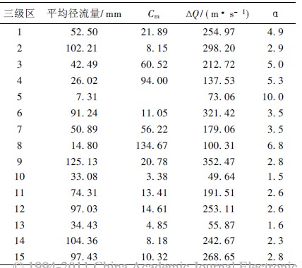 表2 为海河流域径流年际变化幅度。由表可知:①海河流域三级区变化幅度差别较大。Cm 最大可达134. 67,最小仅为3. 38,极值比高达39. 8倍; α的最大值为最小值的6. 7 倍,可见流域内各子流域之间变幅较大。②径流量较大的子流域其相对径流变幅不一定大,如大清河山区平均径流量和绝对径流量变幅均较大,但年际径流相对变化幅度和α均较小,表明该区域突然爆发径流洪水可能性较小。③CV 与α、CS 与Cm 的相关系数分别达0. 97、0. 87,因此α与C V 、CS 与Cm 的变化趋势基本相同。④海河流域径流变幅由南向北逐渐增强,在大清河淀西平原和子牙河平原达到峰值后开始减弱; 分析CV 、CS 和Cr 可发现流域南部地区普遍大于北部地区,平原区大于山区。