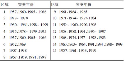 Tab. 3 Abrupt change years of annual runoff in subtegions of the Haihe River basin