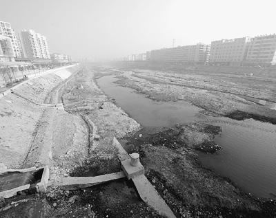 图为大悟县的应急水源澴河濒临断流。