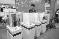 在江苏美淼环保科技有限公司展台,一位周姓经理为记者仔细介绍了该公司的两款主打产品。她打开一件外形类似上海世博会吉祥物“海宝”的超滤机后,记者看到机器内部有三根直径在7厘米、高30厘米左右的圆筒。