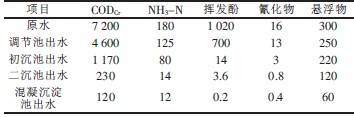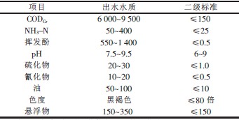 焦化废水的水质因煤气净化工艺的不同而差别很大。以首钢某焦化厂为例,其废水水质见表1,处理后出水应达到《污水综合排放标准》(GB 8978—1996)二级标准。