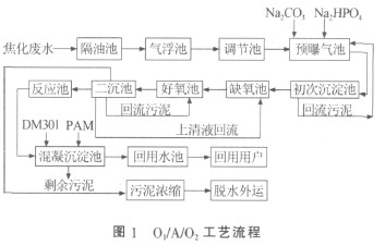 Treatment of highly concentrated coking wastewater by O1/A/O2 process