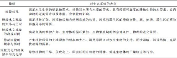 表1 主要河流生态水文指标及其对河流生态系统的影响