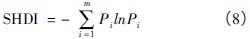 式中,SHDI为景观多样性指数,Pi表示景观类型i占区域景观总面积的比例,m 表示区域景观类型数.