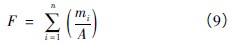 式中,F为景观破碎度指数,n为土地类型数目,mi为第i 类地物的斑块数量.