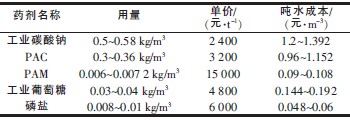 (2)药剂费。所需药剂及其用量见表3。