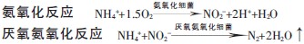 ENRT 是一种高效脱氮技术,即短程硝化厌氧氨氧化,其工艺原理是在硝化阶段通过氨氧化细菌将部分氨氮氧化成亚硝酸盐氮〔2-3〕,剩余的氨氮和已转化的亚硝酸盐氮在厌氧环境中由厌氧氨氧化细菌直接生成氮气〔4〕。