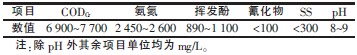 陕西省某企业以煤焦油为原料,生产萘油、洗油、轻油、脱酚油、蒽油及沥青等产品,产品规模为26.5 万t/a,所排废水主要为焦油加温静置脱水产生的废水、生产过程中产生的分离水和管道清扫产生的冷却水。煤焦油废水中的污染物浓度高,组成复杂,除含有氨氮、硫氰化物、氰化物外,还含有酚、吲哚、喹啉等单环或多环芳香族化合物以及含氮、硫、氧的杂环有机污染物,属于较难处理的污水之一〔1〕。其原水水质情况见表1。