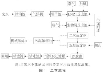 (3)ENRT 工艺出水经生物炭池、砂滤罐、活性炭罐、精滤罐进一步处理后,可满足厂区回用水要求。