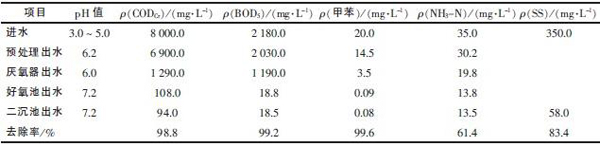 本工程设计缺氧池采用推流式水解酸化型,HRT 为12 h,在有效提高m(BOD5)/m(CODCr)值后将废水提升至厌氧反应器中。