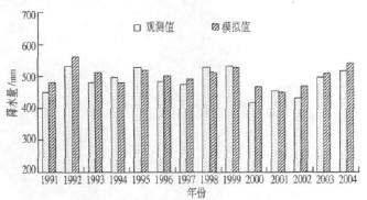 图1 年降水量观测值和模拟值对比