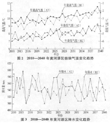 根据统计降尺度模型计算结果,相对1961—1990年均值,未来10、20、30 a 最低、最高气温均明显升高,降水量略有增加。考虑气温升高引起的蒸发量和用水量增多,黄河源区未来水资源形势将更加紧张。