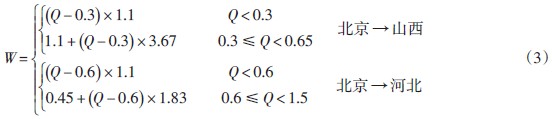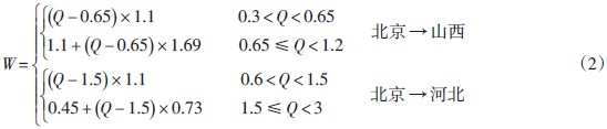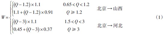 2007年北京和山西、河北省的分水协议中出境水量为0.65亿、1.50亿m3,实际出境水量为0.55亿、0.93亿m3,由此计算得到补偿标准为-0.11、-0.63元/m3。在综合分析的基础上,北京对山西、河北省的水量补偿金额为-110万、-3 574万元。
